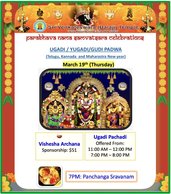 Ugadi / Yugadi/Gudi Padwa - SV Temple, MN